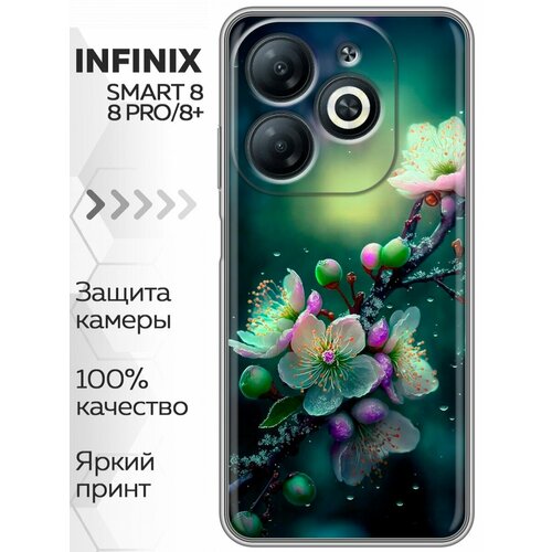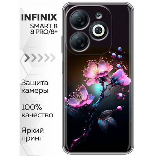 Чехол для Infinix Smart 8, 8 Plus, 8 Pro Женский принт цветы (Инфиникс Смарт 8, 8 плюс, 8 Про)