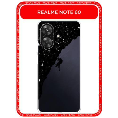 Чехол на Realme Note 60/60X / Реалми Нот 60/60X с принтом Скалолаз в космосе, прозрачный