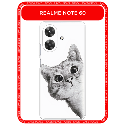 Чехол на Realme Note 60/60X / Реалми Нот 60/60X с принтом Кот рисунок черно-белый