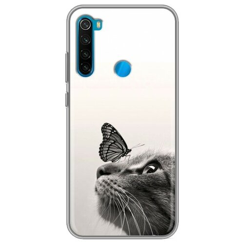 Дизайнерский силиконовый чехол для Редми Нот 8 / Xiaomi RedMi Note 8 Кот и бабочка