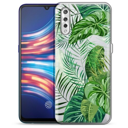 Полупрозрачный дизайнерский силиконовый чехол для Виво В17 Нео / Vivo V17 Neo Зеленые листья