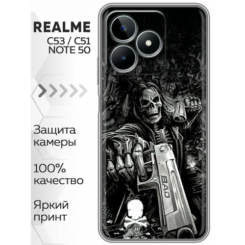 Чехол для Realme C53, C51, C51S, Note 50, Narzo N53 Скелет и череп (Реалми С53, С51s, С51, Нот 50, Нарзо Н53)