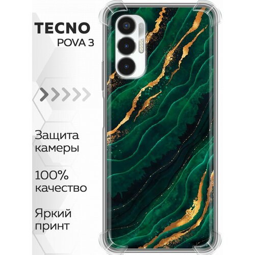 Чехол для Tecno Pova 3 с принтом Мрамор зеленое золото (Техно Пова 3)