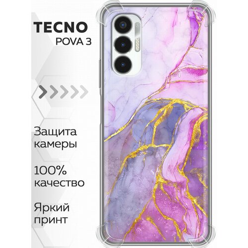 Чехол для Tecno Pova 3 с принтом Мрамор розовый (Техно Пова 3)