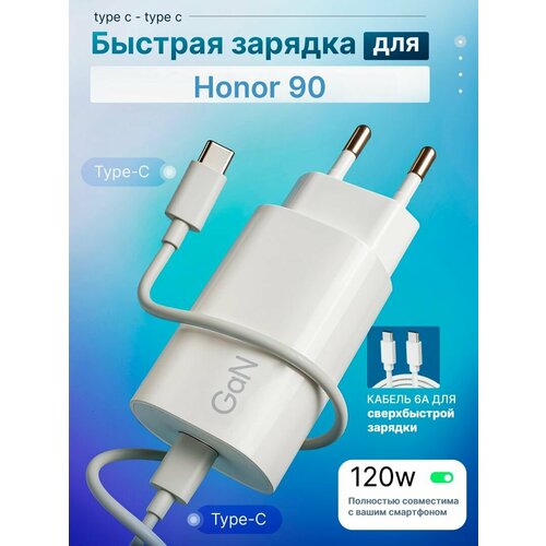 Зарядное устройство для телефона Honor 90 (Хонор 90) / Быстрая зарядка на Android, блок питания 120W с кабелем 6A, Type-C / Type-C
