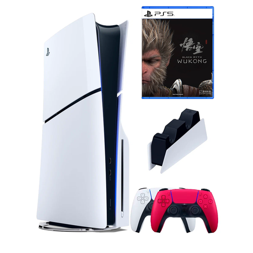 PS5 (ПС5) Игровая приставка Sony PlayStation 5 Slim disk+2-й геймпад(красный)+зарядное+Black Myth: Wukong , 1000 ГБ