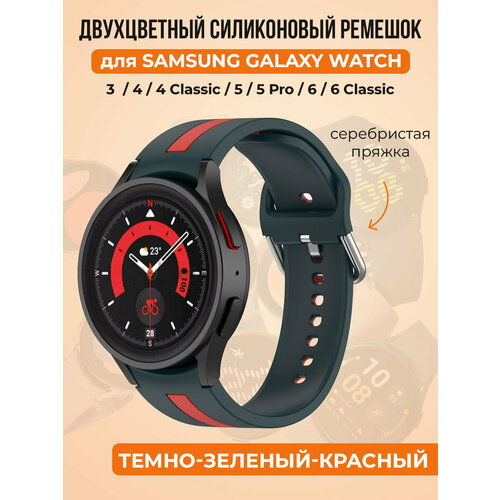 Двухцветный силиконовый ремешок для Samsung Galaxy Watch 4/5/6, темно-зеленый-красный