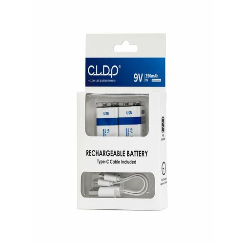 Аккумуляторная перезаряжаемая батарея Li-ion 9V тип крона 350 mWh 2 шт + провод