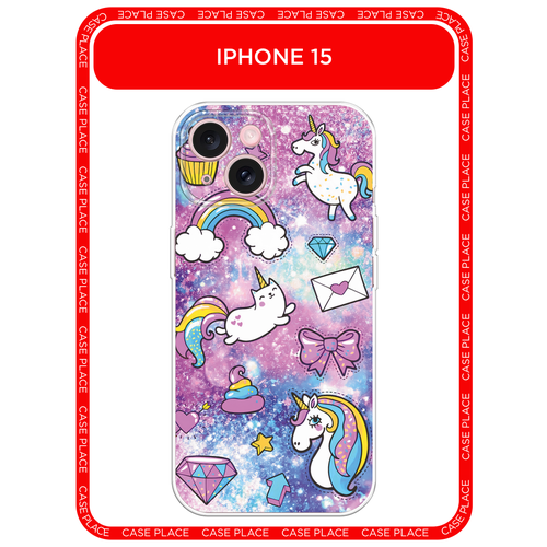 Чехол на Apple iPhone 15 / Айфон 15 с принтом Rainbow doodles
