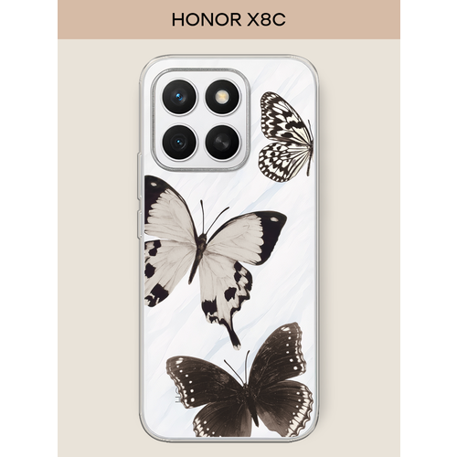 Чехол на Honor X8c / Хонор X8c с принтом Три монохромные бабочки, прозрачный