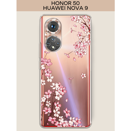Силиконовый чехол "Ветви сакуры 1" на Honor 50/Huawei Nova 9 / Хонор 50, прозрачный