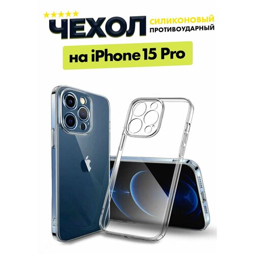 Чехол прозрачный с защитой камеры для iPhone 15 Pro ( на айфон 15 Про ) силиконовый