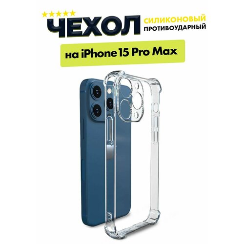 Чехол прозрачный противоударный с защитой камеры для iPhone 15 Pro Max ( айфон 15 про макс ) силиконовый