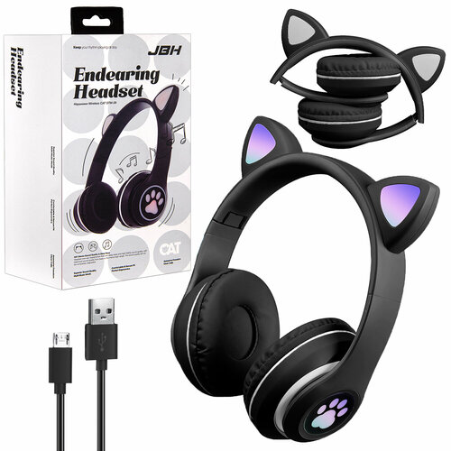 Беспроводные наушники с кошачьими ушками / Блютуз наушники с рисунком кошачьи лапки