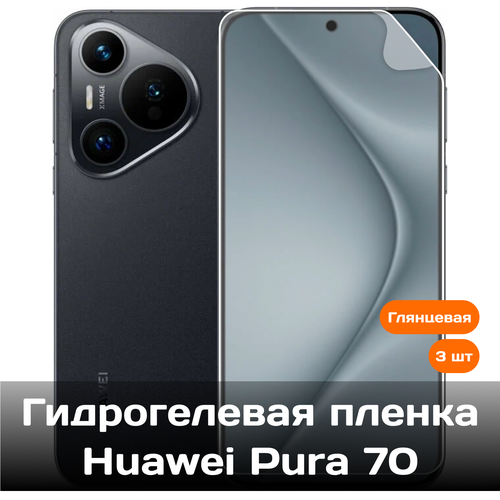 Гидрогелевая пленка для Huawei Pura 70 на весь экран с вырезом под камеру / Защитная противоударная пленка (3 шт)