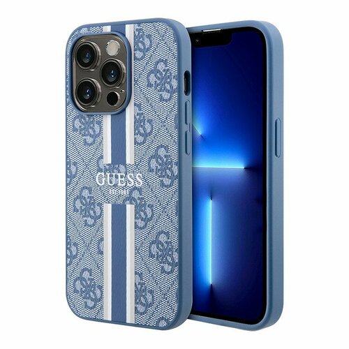 Guess кожаный чехол с полосками для iPhone 14 Pro Max, 4G Stripes голубой