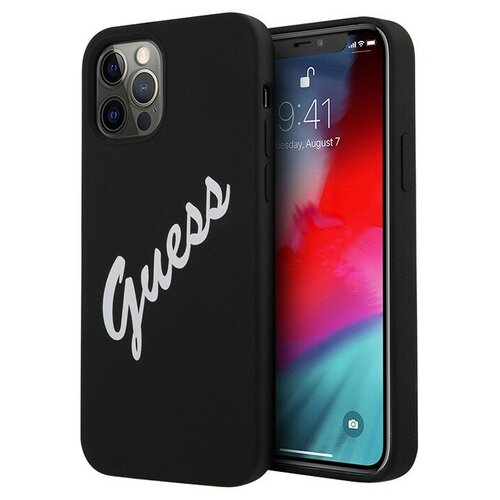 Чехол CG Mobile Guess Liquid silicone Script Laser logo для iPhone 12 Pro Max, цвет Черный/Белый (GUHCP12LLSVSBW)