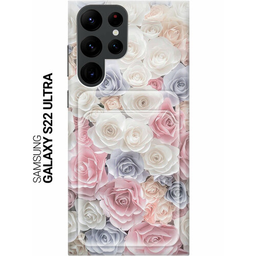 Силиконовый чехол на Samsung Galaxy S22 Ultra / Самсунг С22 Ультра с рисунком "Пастельные розы" и карманом для карт