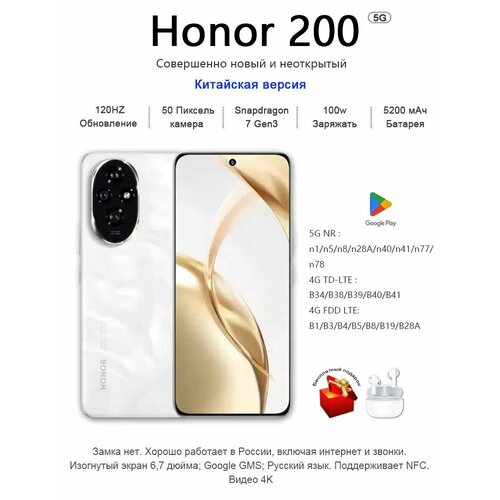 Смартфон Honor 200, Google Play Store+Поддержка русского языка и OTA-обновлений, CN 12/256 ГБ, слоновая кость, Доставка из России