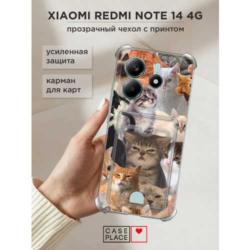 Чехол на Xiaomi Redmi Note 14 4G (Редми Нот 14 4G) с картой и принтом Мемные коты