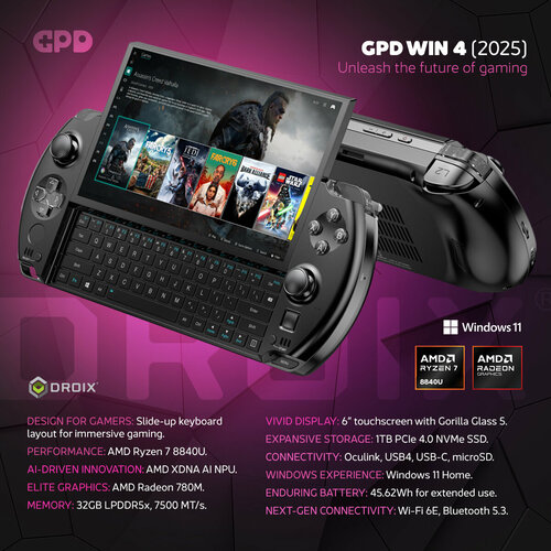 Игровая консоль GPD WIN 4 32GB/1TB/8840U/2025г