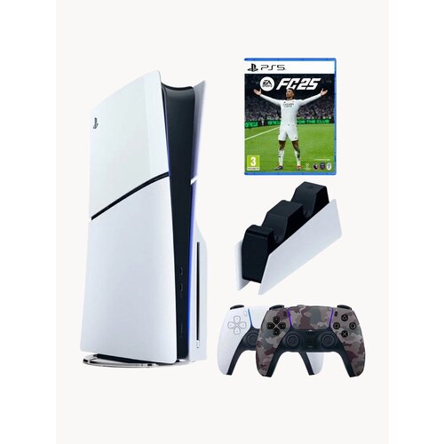 Игровая приставка Sony PlayStation 5 Slim, с дисководом, 1 ТБ, зарядная станция, 2й геймпад камуфляжный, игра Fifa 25