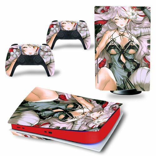 Наклейка виниловая защитная на игровую консоль Sony PlayStation 5 Slim Disc Edition, Аниме тянка, полный комплект с геймпадами