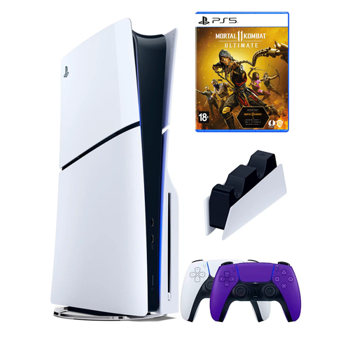 PS5 (ПС5) Игровая приставка Sony PlayStation 5 Slim disk+2-й геймпад(фиолетовый)+зарядное+ Mortal Kombat 11 , 1000 ГБ