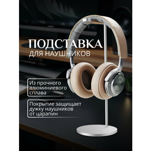 Подставка для всех моделей полноразмерных наушников и игровых гарнитур KINZOKU из алюминия, серебристая