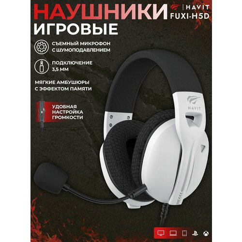 Наушники / гарнитура проводные игровые с микрофоном Fuxi-H5d, бело-черные 3.5мм