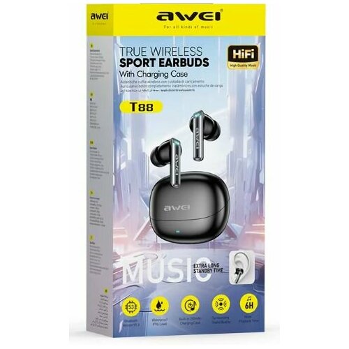 Наушники беспроводные AWEI Т88 tws, игровые, для спорта, супер звучание, цена-качество!