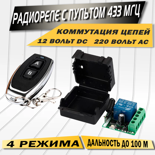 Радиореле с пультом, 433МГц, 1 канал, 4 режима работы