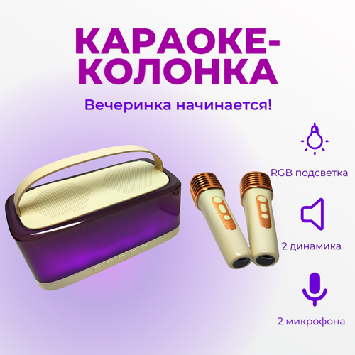 Караоке система с двумя микрофонами, караоке колонка 80W, RGB