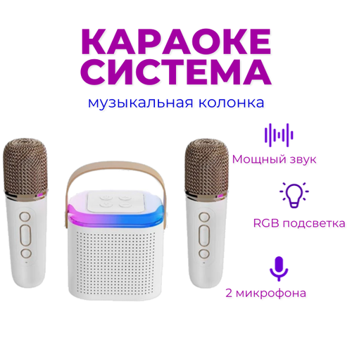 Цены на Караоке система, портативная, RGB-подсветка, Bluetooth 5,1, 2 микрофона розовый в г. Санкт-Петербург