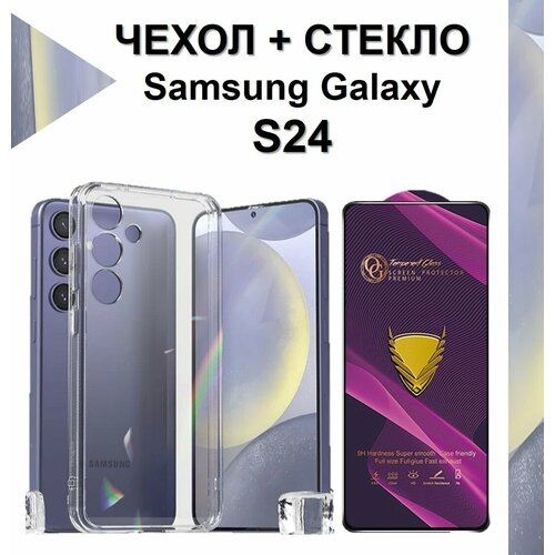 Комплект 2 в 1: Прозрачный чехол с защитой камеры + полноэкранное стекло для Samsung Galaxy S24 / Галакси С24