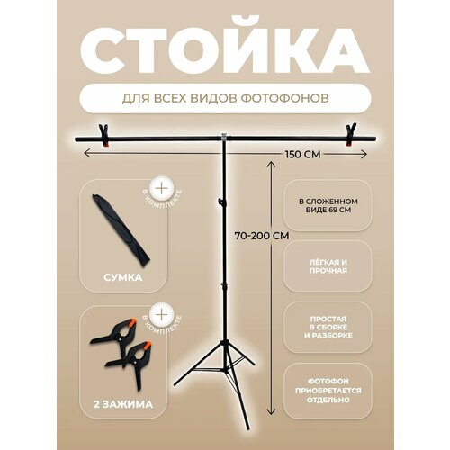 Особенности:- Конструкция разборная;- Регулировка высоты и ширины;- Универсален к любому типу фона, может вместить бумагу и ткань;- Прищепки для