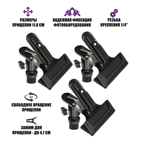 Держатель прищепка PSH-14 для отражателя на штатив, крепление зажим для фона, 3 шт