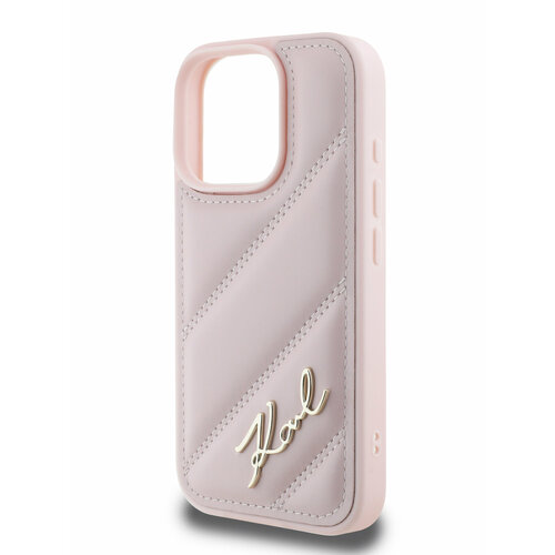 Lagerfeld для iPhone 16 Pro Max чехол PU Quilted Signature metal logo Hard Pink