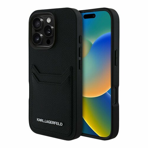 Karl Lagerfeld чехол с карманами для карт на iPhone 16 Pro, зернистая кожа PU