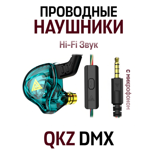 Внутриканальные наушники QKZ DMX проводные Hi-Fi наушники с гарнитурой, 3.5 мм mini jack, бирюзовый