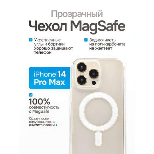 Чехол Antiyellow, для iPhone 14 Pro Max , прозрачный, ударопрочный, поддержка MagSafe