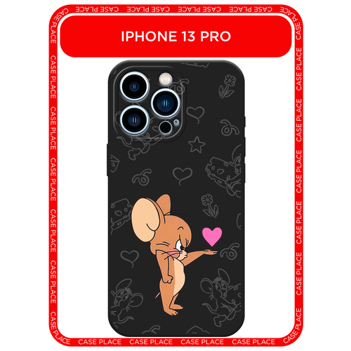 Черный матовый чехол на Apple iPhone 13 Pro / Айфон 13 Про с принтом Джерри и сердце 2