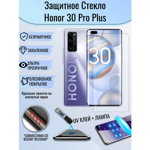 Защитное стекло Honor 30 Pro plus с уф клеем и лампой изогнутое стекло олеофобное покрытие безрамочное хонор 30 про плюс
