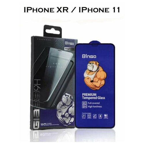 Защитное стекло на дисплей Bingo 9D/9H iPhone XR/11, Черная рамка, Толщина 0,3мм