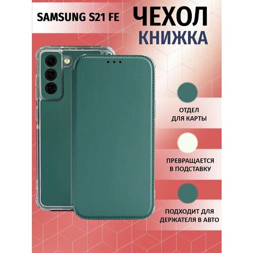 Чехол-книжка на Samsung S21 Fe с противоударным бампером с усилиленными углами для самсунг с21 фе Темно-зеленый