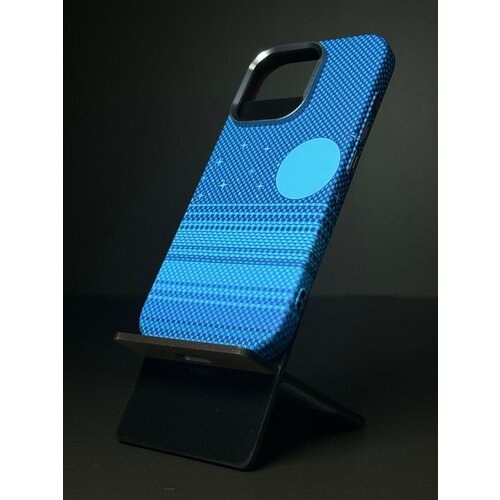 Чехол-накладка для Айфон 16 Про с МагСейф из Кевлара / чехол на iPhone 16 Pro с MagSafe Kevlar LUXO Life+ / MOSBROS, Синий рассвет, карбоновый