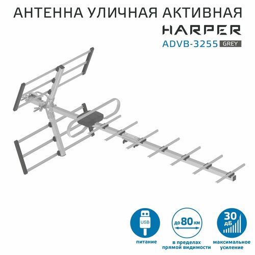 Антенна для телевизора уличная активная HARPER ADVB-3255, серый