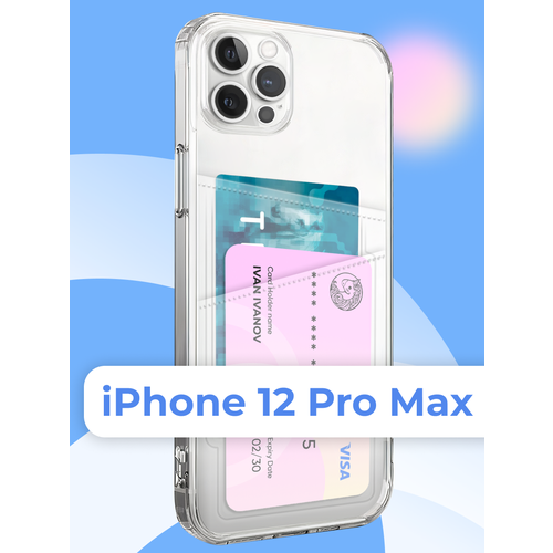 Защитный чехол на iPhone 12 Pro Max прозрачный с картхолдером с двумя кармашками / Противоударный с защитой камеры