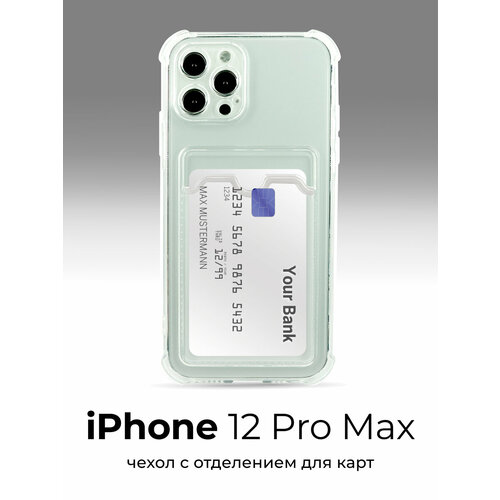 Защитный чехол на iPhone 12 Pro Max прозрачный с картхолдером / Противоударный бампер с защитой камеры