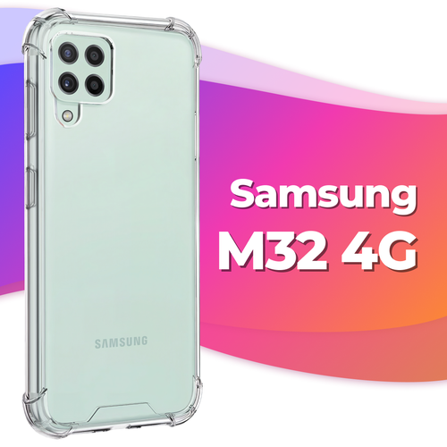 Противоударный силиконовый чехол Armor для Samsung Galaxy M32 4G / Бампер для телефона Самсунг Галакси М32 с усиленными углами (Прозрачный)